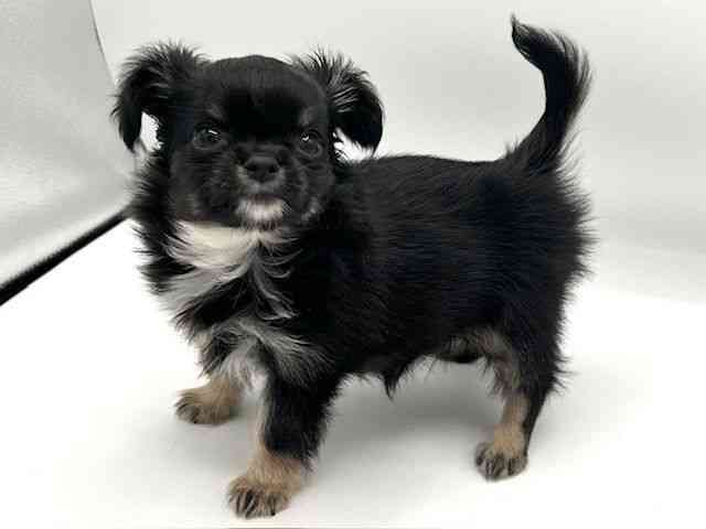 【父 体重:1.8kg 毛色:ブラックタン&ホワイト】 【母 体重:2.2kg 毛色:フォーン】 つぶらな瞳が可愛いロンチくん☆ マイペースな甘えん坊さんですよ( *´艸`) 3/25時点で体重0.79kg
