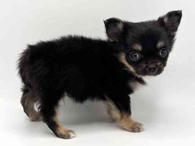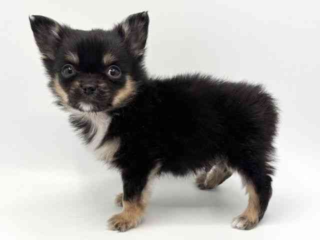 【父:ホワイト 2kg】【母:ブラック&ホワイト 2.8kg】 両親小さめ、この子も小さめチワワちゃんです^^ まだよちよちの姿がとってもキュート☆ 黒多めの甘えん坊な男の子!