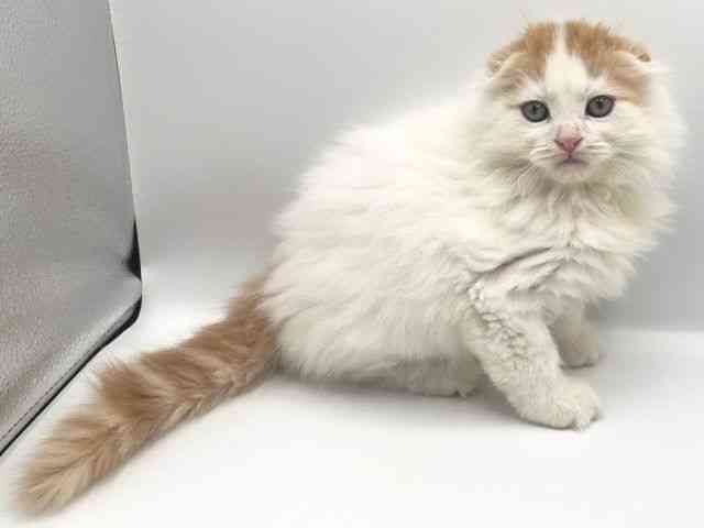【父 体重:3.5kg 毛色:レッドタビー&ホワイト】 【母 体重:3.0kg 毛色:レッドタビー&ホワイトバン】 折れ耳・ロングヘアーがとっても可愛いです☆ お耳と尻尾くらいにしかカラーが入っていないのがチャームポイントです! 11/11時点で体重1.2kg
