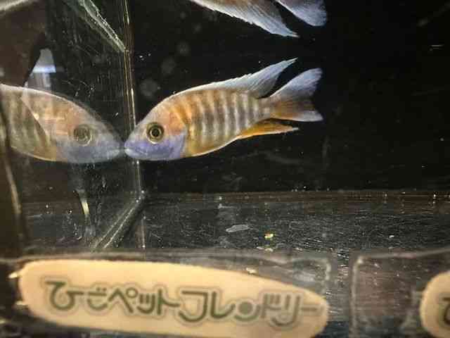 マラウイ湖に生息するアフリカンシクリッドの1種です。 最大サイズは12~15cm! オレンジと青の発色がとても美しい種類です♪