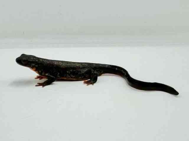 沖縄諸島に生息しており、背中が黒くお腹が赤・オレンジ色、尾が細長いのが特徴のイモリちゃんです。 背中にある金箔状の模様がとっても素敵♪