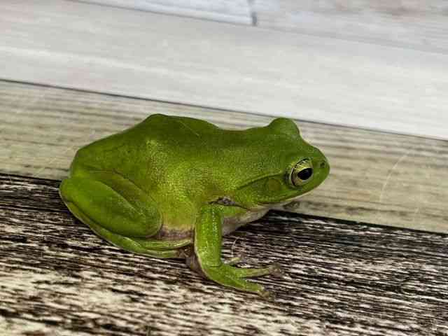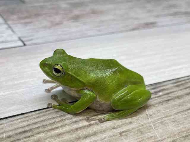綺麗な緑のカエルさんです! 日本のカエルの仲間です! 良く鳴いてます!