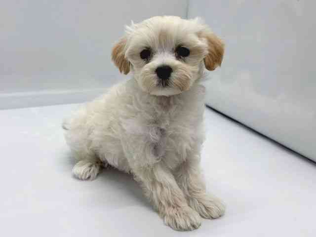 【父:ホワイト、3.1kg】【母:アプリコット、3.2kg】 マルチーズとトイプードルのミックスちゃんです♪ ふわふわもこもこ!毛質はプードルさんより!!!