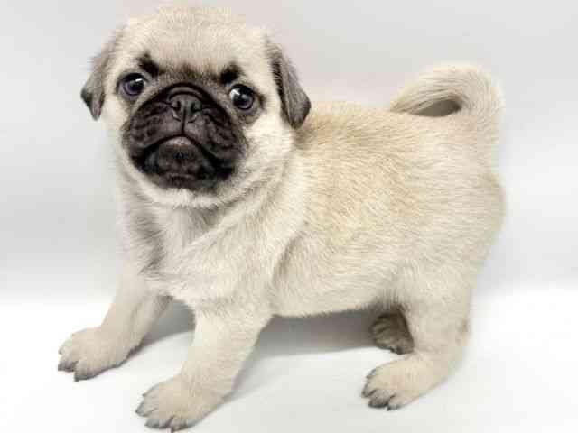 むっちむちのパグくんがやってきました☆彡 横幅のあるどっしり体型です^^ 少し情けないお顔立ちと表情がたまらなく可愛いです! 鼻ぺちゃさんがお好きな方はお早めに見にいらしてくださいね♪