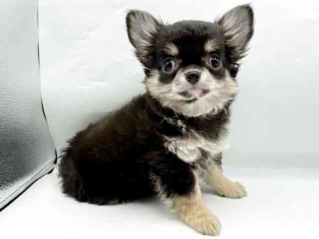 まん丸なお顔に短いお鼻がとってもかわいいチワワくん(^^) 人が大好きで、いつもしっぽをブンブン振ってアピールしてくれます♪♪ お父さん:チョコレート&クリーム 2.2kg お母さん:ブラッククリーム&ホワイト 2.3kg 2/5時点・・・0.84kg