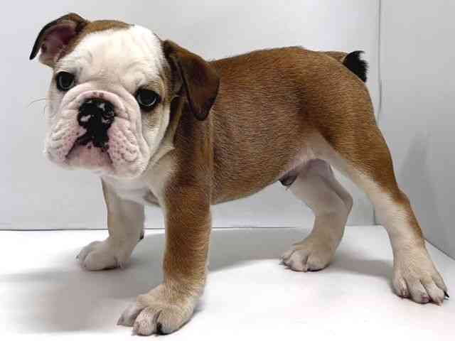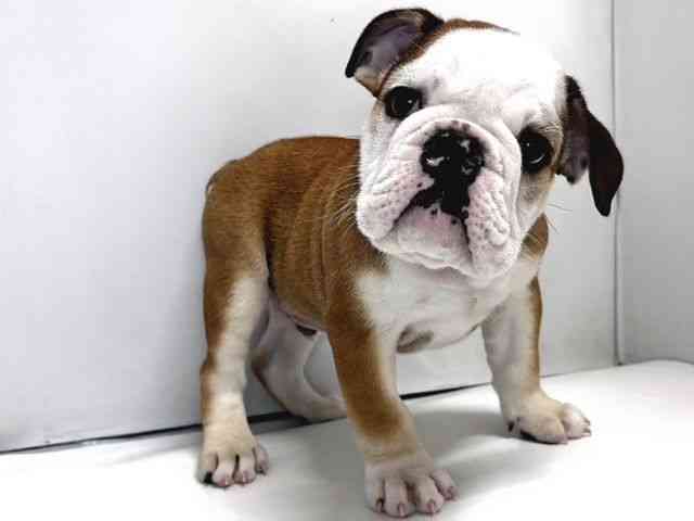 【父毛色:レッド&ホワイト 28kg】【母毛色:フォーン&ホワイト 10kg】 むちむちボディがたまらなくかわいいミックスちゃん☆ はなぺちゃ具合も最高です♪ 2/14時点で体重3.82kg