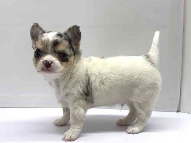 父:ホワイトブラック&タン 2.5kg 母:ブルーマール 3kg 珍しいカラーのチワワくんが来てくれました! むっちり体型で将来有望さんです☆ 撫でてもらうの大好きです(*´ω`*)