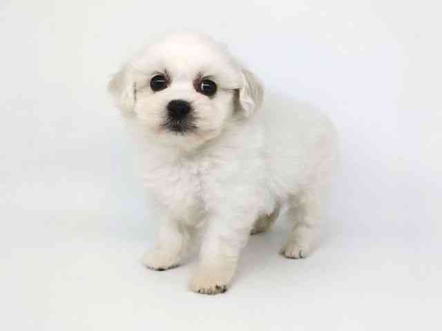 白くてもこもこふわふわなおっとり屋さんな男の子です!! 個体差が少ないミックスちゃんなのでペキニーズとビションフリーゼのミックスを調べると大人になった時のイメージがわきやすいかもしれないですね!!