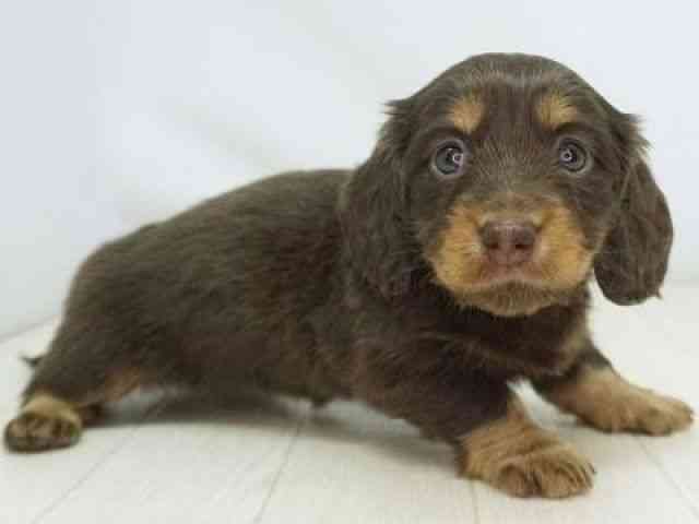 お鼻短め!むちむち体型が可愛いダックスちゃん☆ 今のところおっとりマイペースさんです♪ 3/26→0.98kg 父:チョコレートダップル(カニーンヘン) 母:チョコレート&タン 3kg