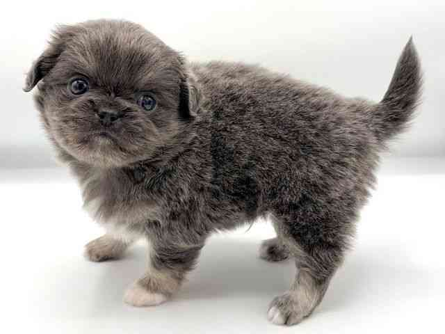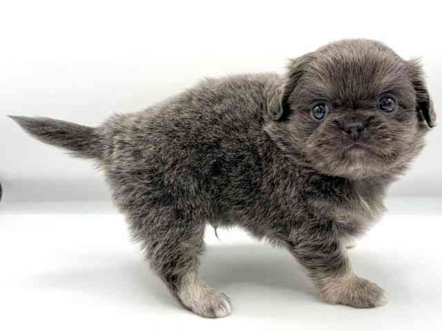 3/27時点での体重は、820gです。 ダークグレー!? 珍しいカラーのチワペキちゃんがやって来てくれました♪ 可愛い毛色と鼻べちゃ顔が可愛すぎます( *´艸`)