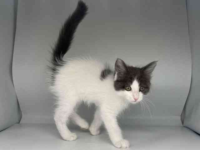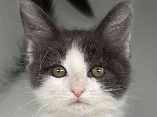 【父 毛色:ブルータビー&ホワイト 体重:6.0kg】 【母 毛色:シルバータビー&ホワイト 体重:4.5kg】 模様が可愛いハチワレメイちゃんです♪
