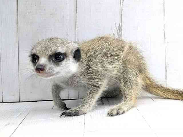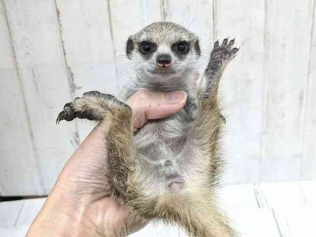 ミーアキャットべビーやってきました!! 来たばかりで緊張気味ですが、食欲旺盛! 抱っこもナデナデも出来る可愛い子です♪ まだ片手サイズのおチビちゃんですよ★